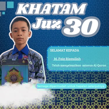 Selamat kepada para peserta didik yang telah berhasil menyelesaikan hafalan Juz 30 TP. 2024/2025. Pencapaian ini bukanlah hal yang mudah, dan kami menghargai usaha serta dedikasi yang telah kalian tunjukkan dalam proses ini.