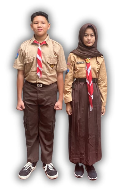 Putra: Kemeja pramuka lengan panjang/pendek, celana pramuka.